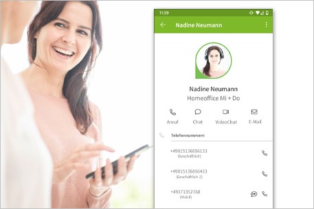 Mit ProCall Enterprise haben Sie die Möglichkeit sich – auch aus dem Homeoffice – mit Kollegen über VideoChat auszutauschen. Das prämierte Präsenz-Management gibt Auskunft über die aktuelle Erreichbarkeit der Kollegen. So kann einer, der Situation angepasster Kommunikationsweg gewählt werden um diese Person zu kontaktieren.